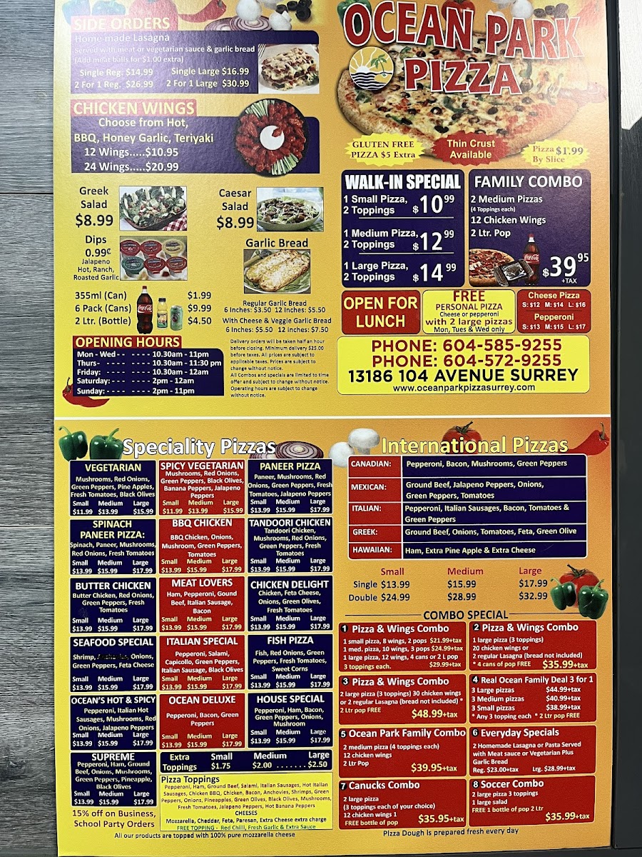 Introducing Ocean Park Pizza, a delightful gem located at 13186 104 Ave, Surrey, BC. This pizzeria stands out for its commitment to freshness and quality, as highlighted by patrons who rave about the just-baked slices ready to serve. The pizza strikes a perfect balance—not too thin, not overly doughy—hitting that ideal middle ground that satisfies every craving.